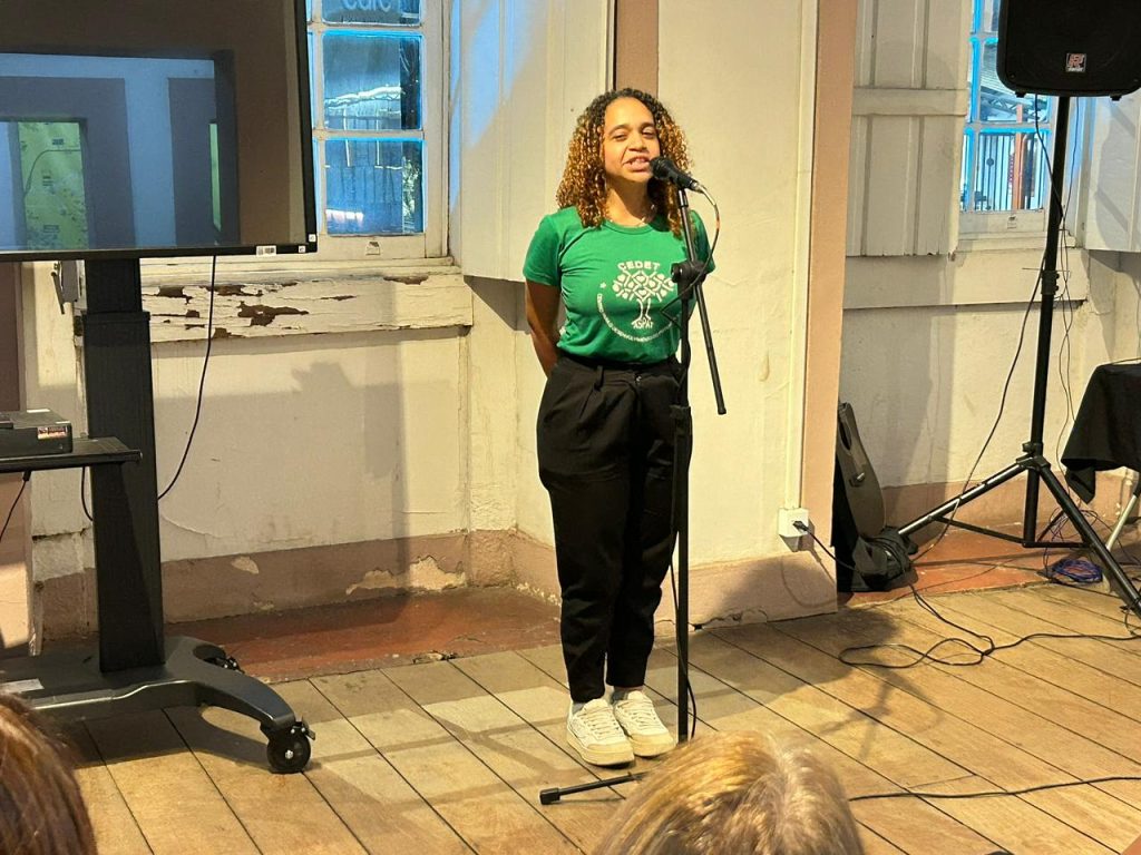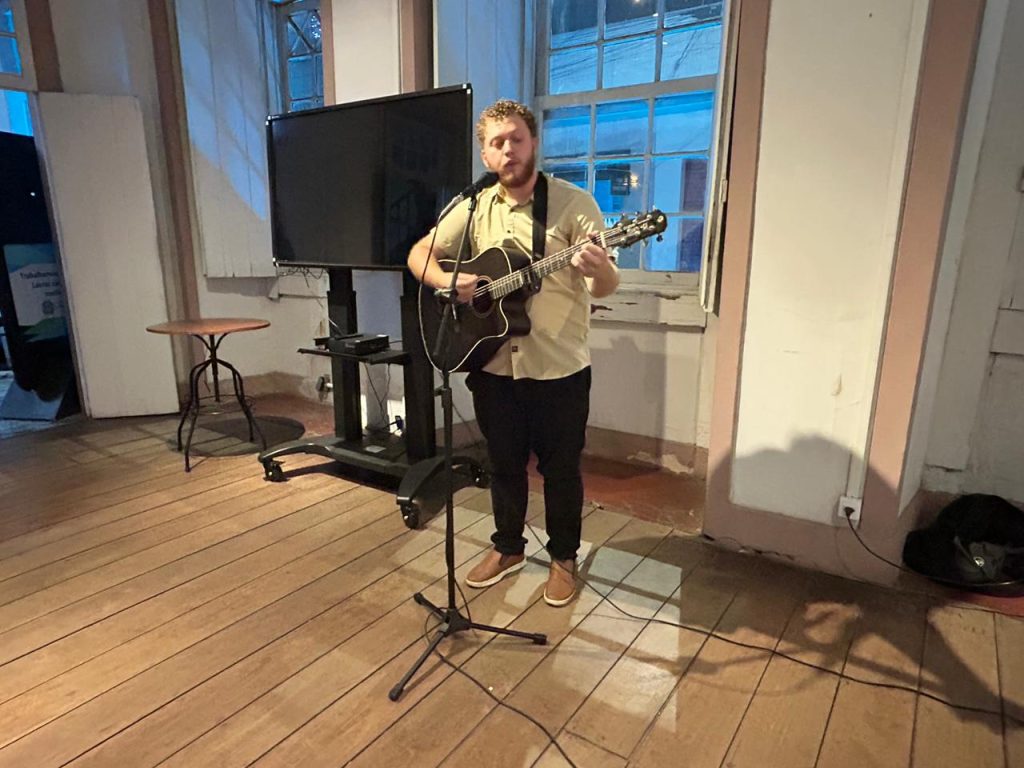 A programação incluiu a abertura com o grupo de canto do Centro para o Desenvolvimento do Potencial e Talento – CEDET, apresentações artísticas de professores músicos e um espaço especial para que os participantes pudessem falar sobre suas criações, inspirações, processos e sentimentos envolvidos em suas produções literárias.