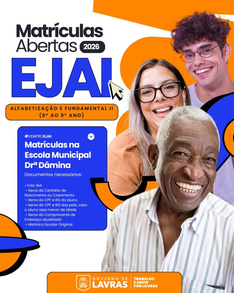 O Governo de Lavras está com matrículas abertas para a EJAI – Educação de Jovens, Adultos e Idosos, modalidade voltada a pessoas que não concluíram a escolarização na idade regular. A oferta contempla alfabetização e Ensino Fundamental II, do 6º ao 9º ano, ampliando o acesso à educação e promovendo inclusão social por meio da rede municipal de ensino.